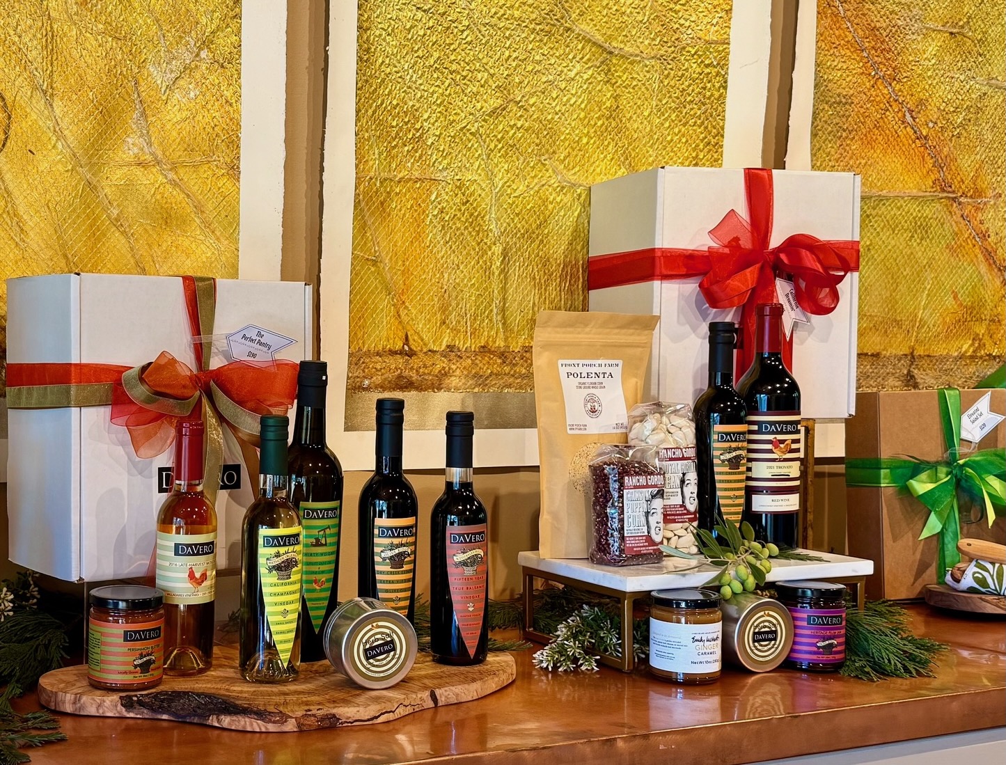 Your first glass is complimentary with your visit—enjoy as you browse beautifully wrapped gift sets, our exquisite wines, and farm favorites ready for gifting.